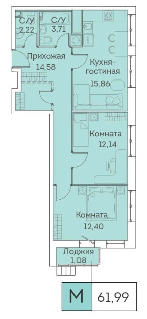 Минимальная площадь: 62,0 м² Максимальная площадь: 62,0 м²