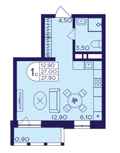 Студия · 27 м² · 13 эт.