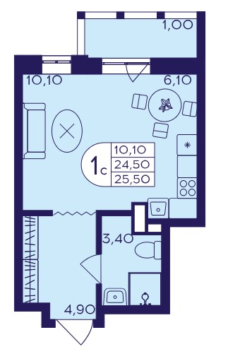 Студия · 26 м² · 10 эт.