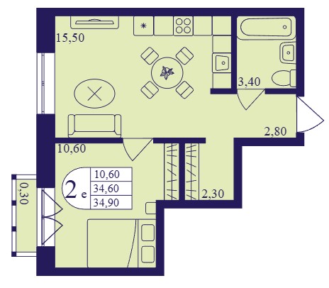 2-комн · 34 м² · 1 эт.