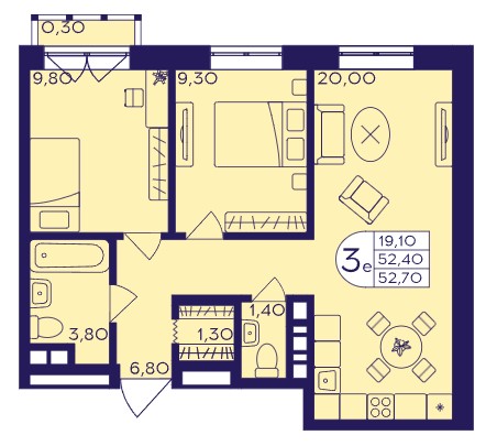 3-комн · 53 м² · 4 эт.