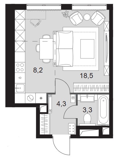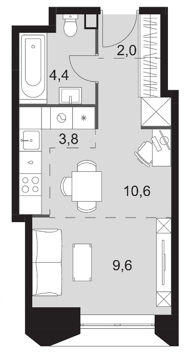 Минимальная площадь: 30,4 м² Максимальная площадь: 101,6 м²