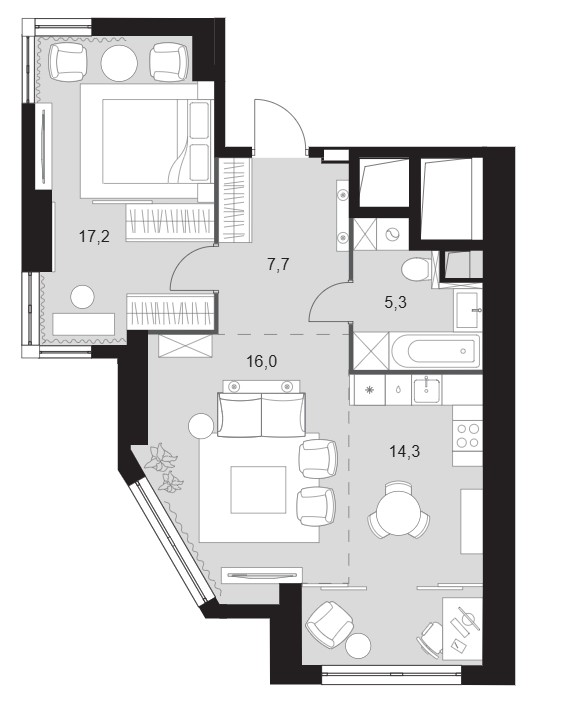2-комн · 43 м² · 43 эт.