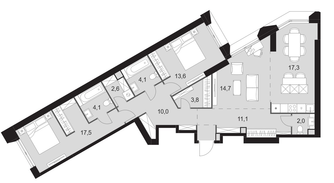 3-комн · 101 м² · 34 эт.