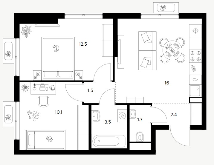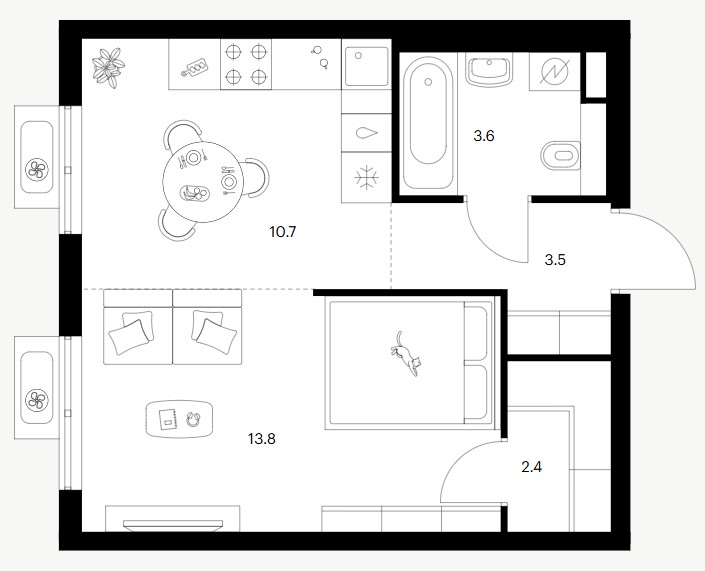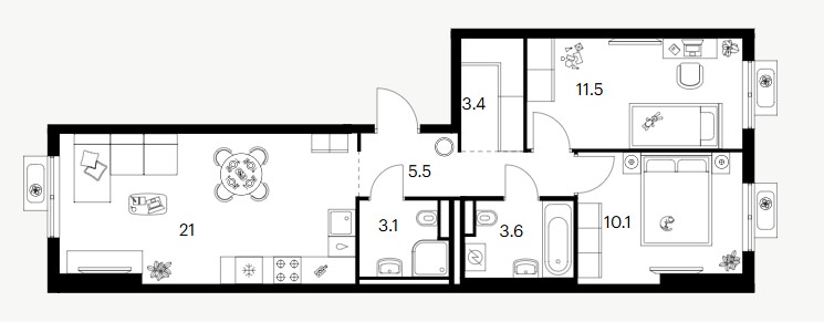Минимальная площадь: 21,7 м² Максимальная площадь: 58,2 м²
