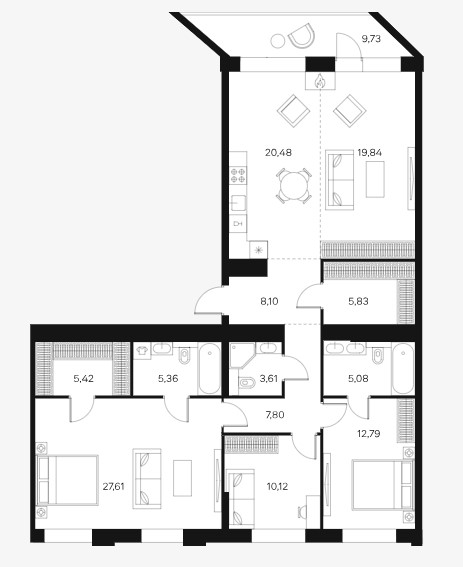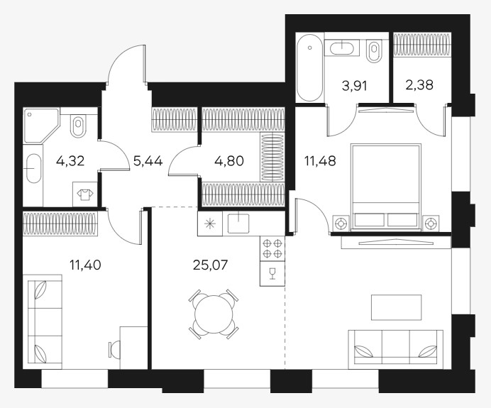Минимальная площадь: 69,3 м² Максимальная площадь: 135,2 м²