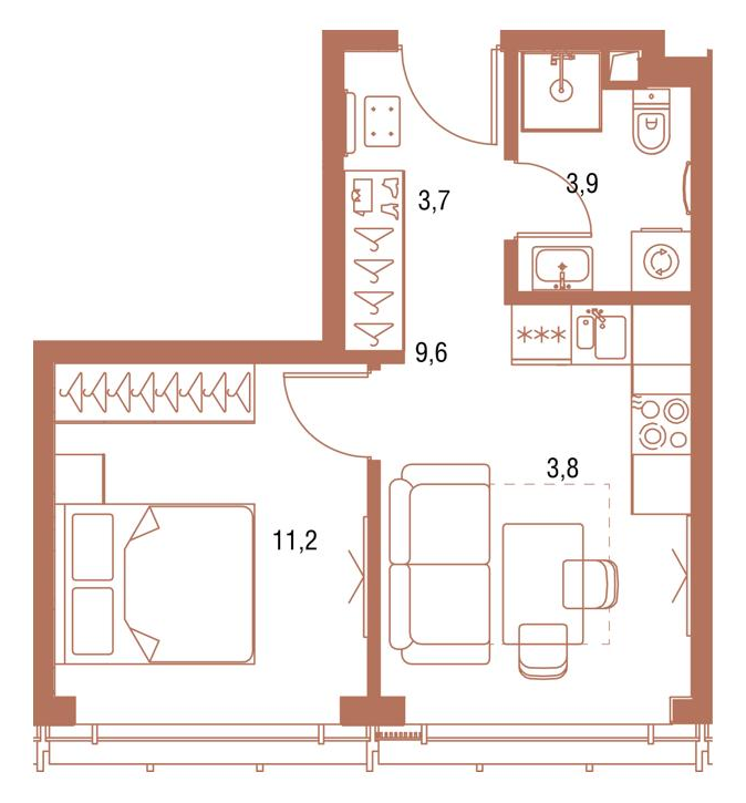 1-комн · 38 м² · 9 эт.
