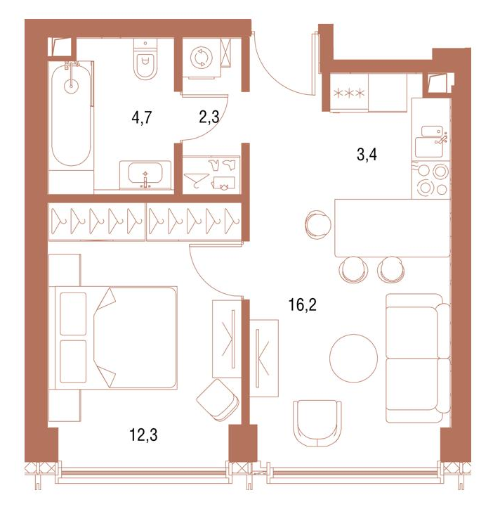 1-комн · 38 м² · 34 эт.
