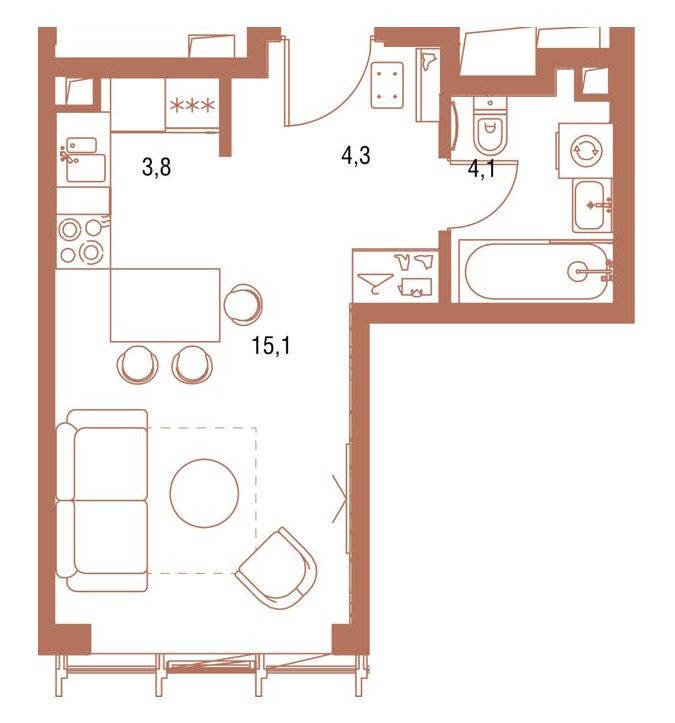 1-комн · 38 м² · 3 эт.