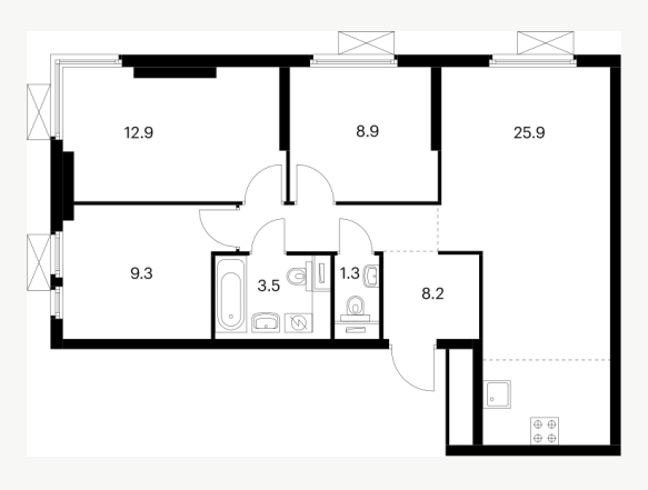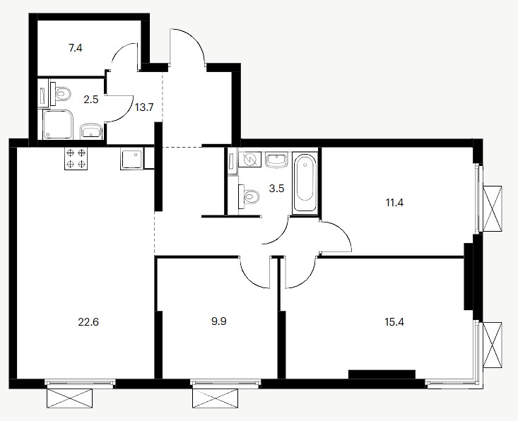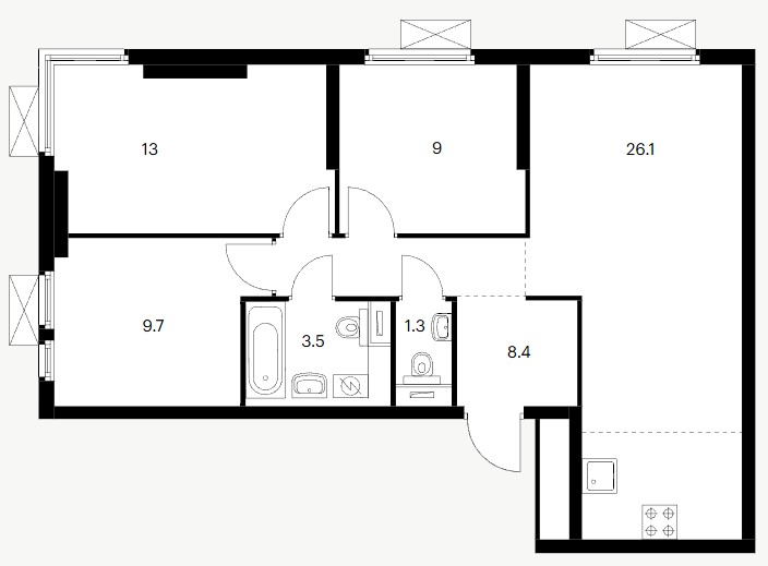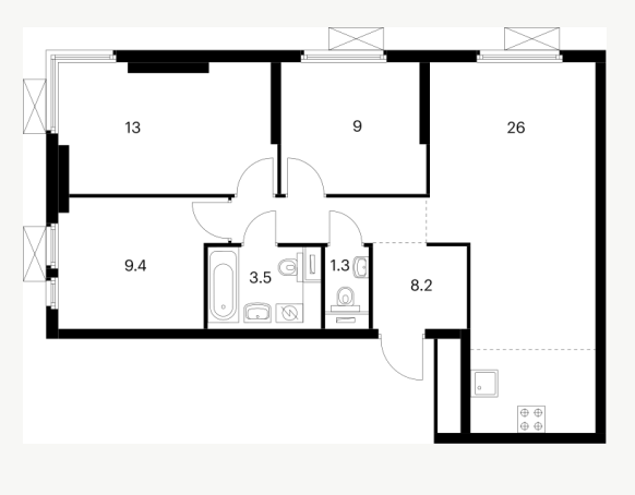 В первой очереди по 13 квартир на этаже, это, конечно, жестоко- на такое бы не пошли... Но в 3й очереди нашлась очень хорошенькая башенка, с заметно более скромным соседством)