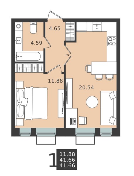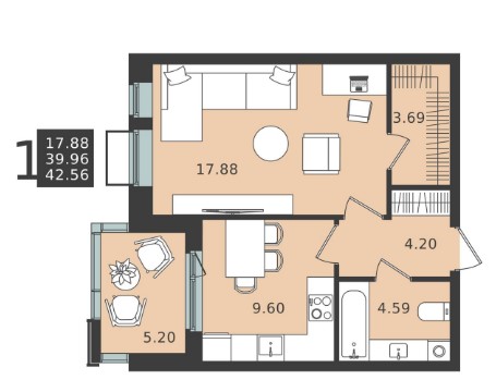 1-комн · 42 м² · 3 эт.