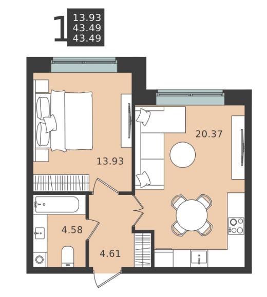 1-комн · 43 м² · 3 эт.