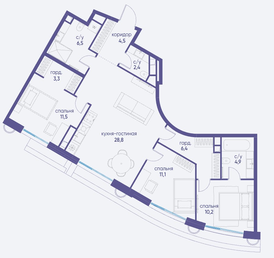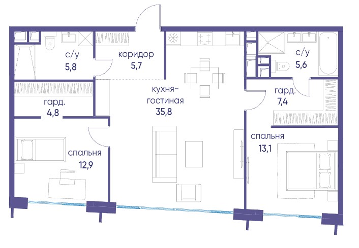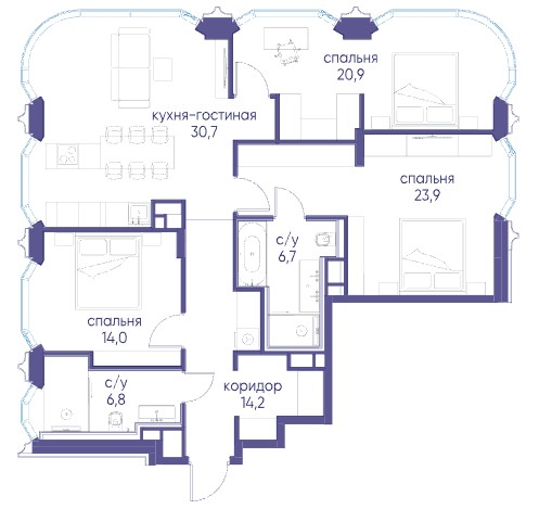 3-комн · 117 м² · 14 эт.