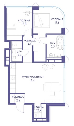 2-комн · 91 м² · 17 эт.