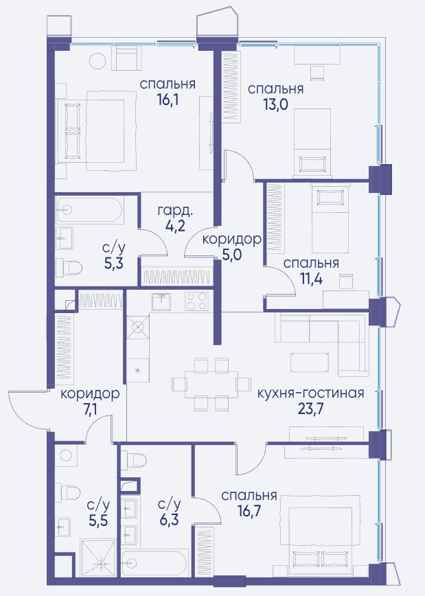 3-комн · 138 м² · 16 эт.