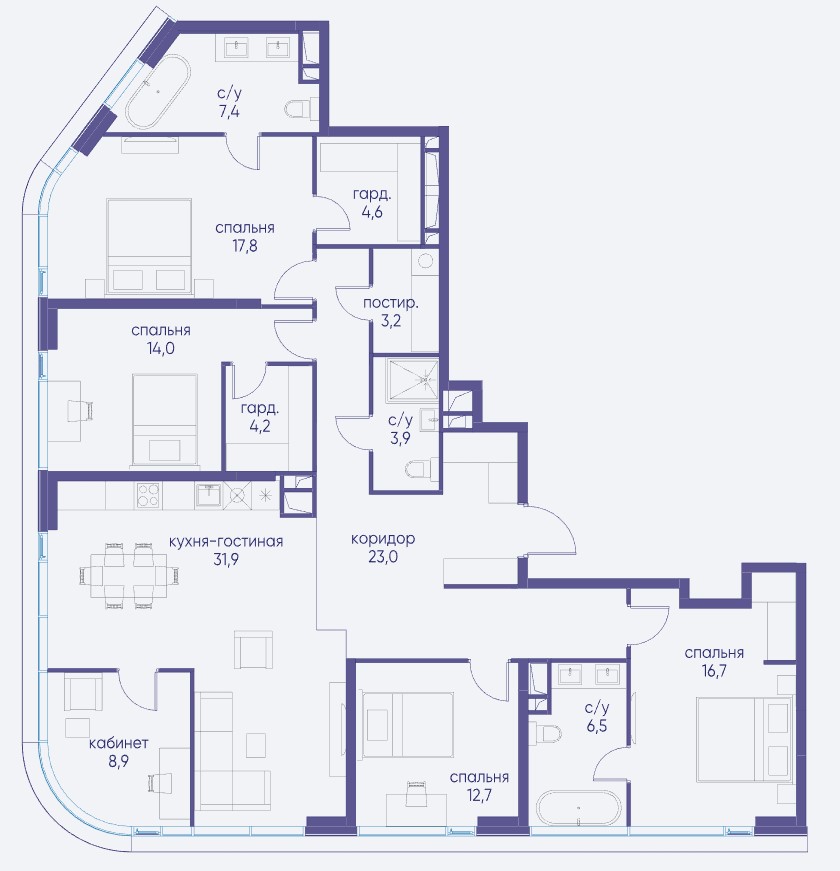 4-комн · 221 м² · 19 эт.