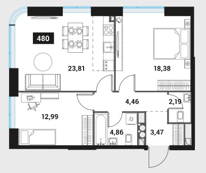 Минимальная площадь: 45,7 м² Максимальная площадь: 99,2 м²