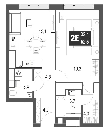 Минимальная площадь: 52,7 м² Максимальная площадь: 115,3 м²