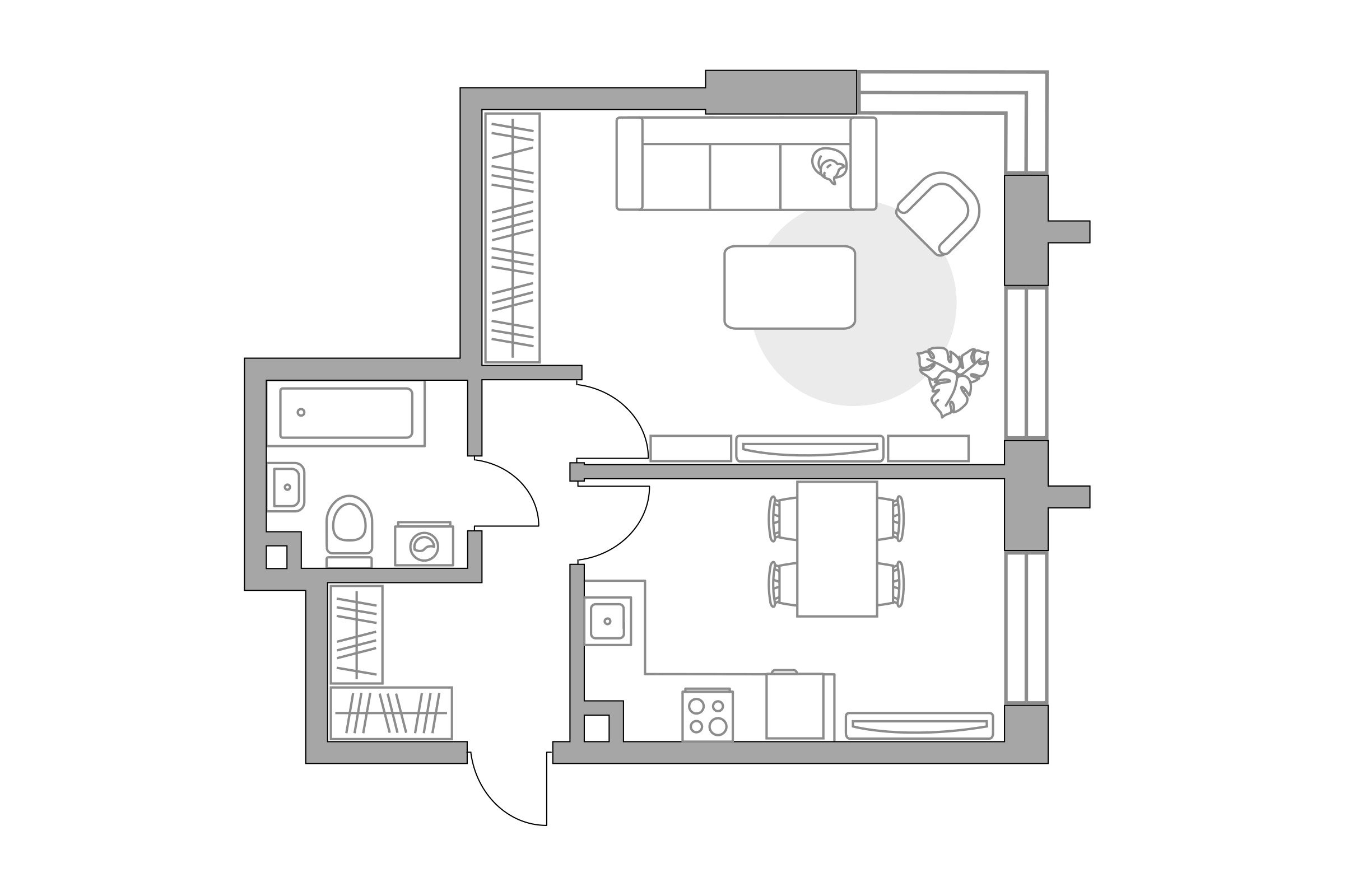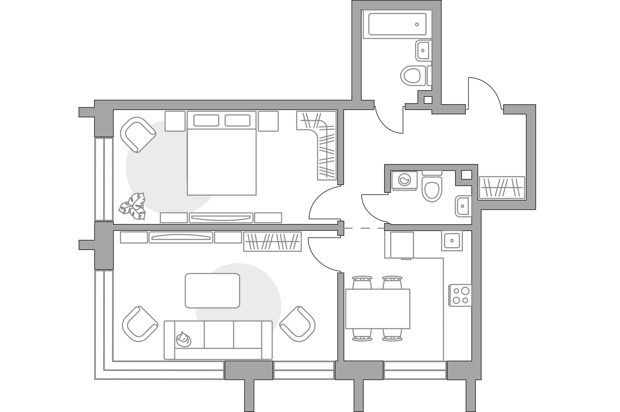 Вход в лобби на уровне земли, есть зоны ожидания для посетителей, стойки консьержей и колясочные. Выходы из подъездов ведут на улицу и во внутренний двор, закрытый от посторонних.