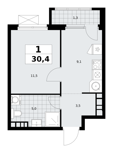 1-комн · 30 м² · 23 эт.