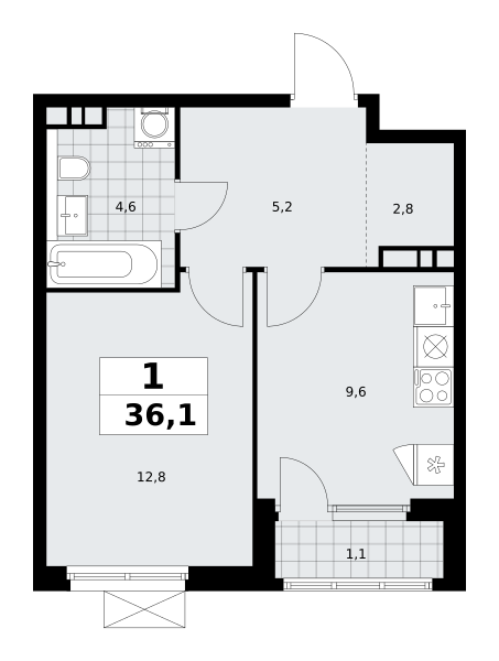 1-комн · 36 м² · 19 эт.
