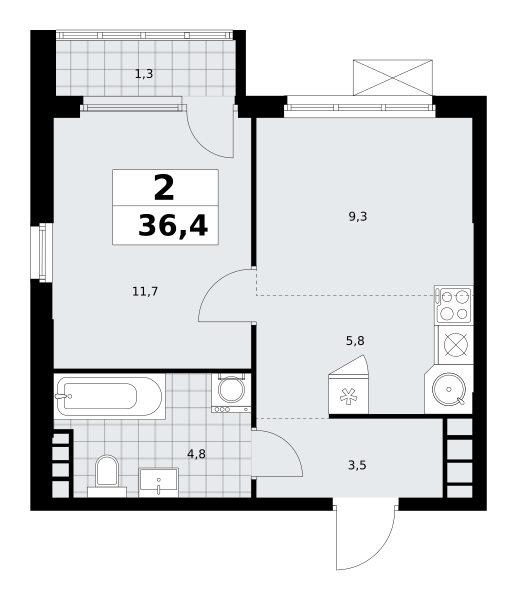 2-комн · 36 м² · 29 эт.