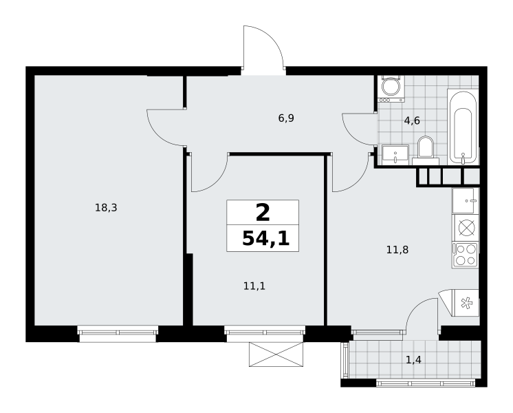 2-комн · 46 м² · 18 эт.