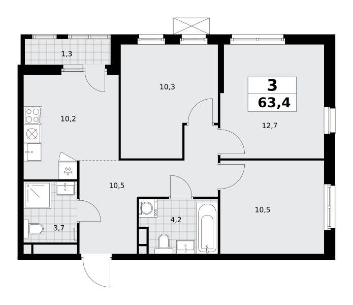 3-комн · 63 м² · 7 эт.