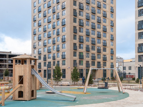 В закрытых от машин дворах устроят игровые и спортивные площадки с антитравматическим покрытием и скверы с местами для отдыха. На территории проложат пешеходные и велосипедные дорожки. Холлы с дизайнерской отделкой. Входные группы с витражным остеклением сделают без порогов, с выходом во двор и на улицу. Застройщик установит камеры видеонаблюдения. В подъездах предусмотрены места для велосипедов и колясок.