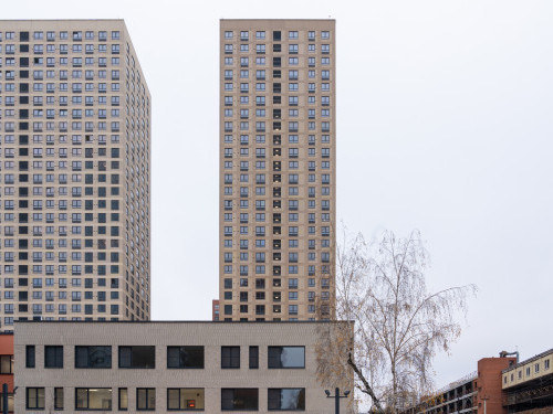 Первый этаж нежилой, с помещениями под магазины, пекарни, аптеки и кафе. В подземном паркинге предложены машиноместа и кладовые. Из собственных объектов инфраструктуры построят школу и детский сад.