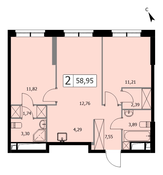 2-комн · 61 м² · 12 эт.