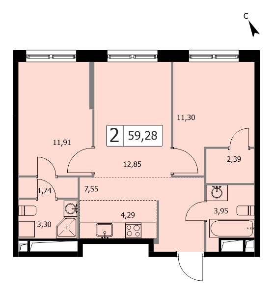 2-комн · 59 м² · 14 эт.