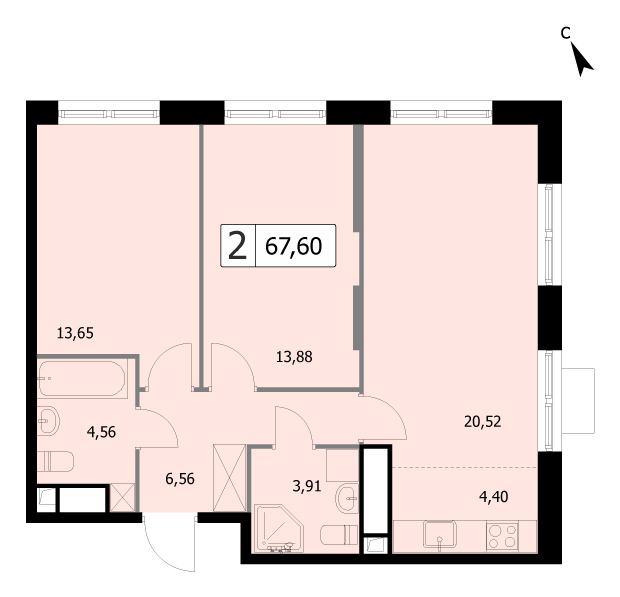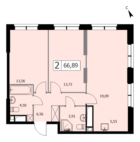 2-комн · 67 м² · 19 эт.