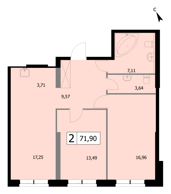 2-комн · 72 м² · 19 эт.