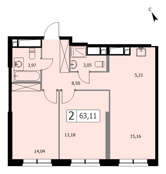 2-комн · 63 м² · 19 эт.