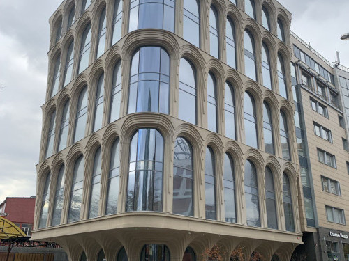 На первом этаже откроются комната с сейфами, сигарная и одно коммерческое помещения без конкретного предназначения. Три уровня под землей отведены под паркинг, в котором сможет разместиться 22 машиноместа размером 14-18 кв. м.