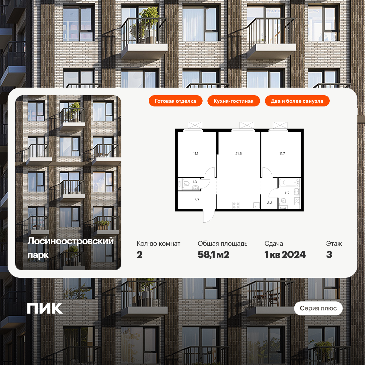 2-комн · 58 м² · 3 эт.