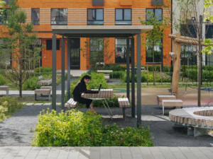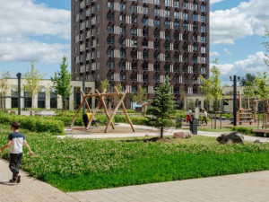 В микрорайоне разобьют крупную детскую площадку PlayHub. Предусмотрено несколько спортивных зон, в том числе с тренажерами. Вдоль кварталов проложат два пешеходных бульвара.