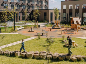 Микрорайон реализуют по принципу квартальной застройки. Дворы сделают закрытыми для машин. Предусмотрены многофункциональные игровые и спортивные площадки, места для отдыха, прогулочные бульвары и скверы.