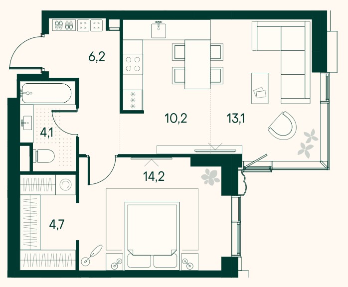 1-комн · 42 м² · 10 эт.