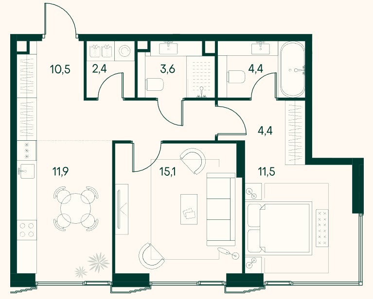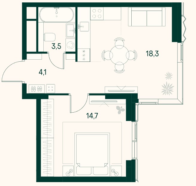 1-комн · 57 м² · 14 эт.