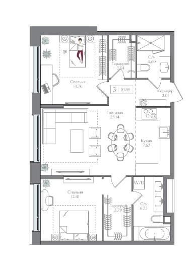 2-комн · 81 м² · 3/16