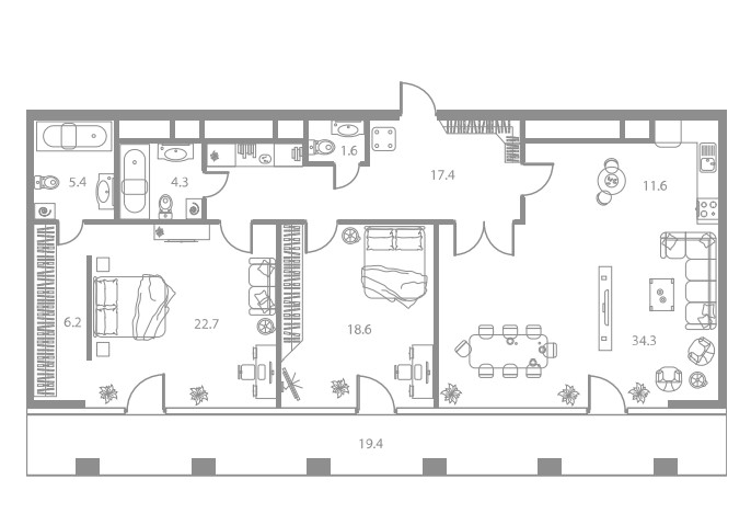3-комн · 122 м² · 21 эт.