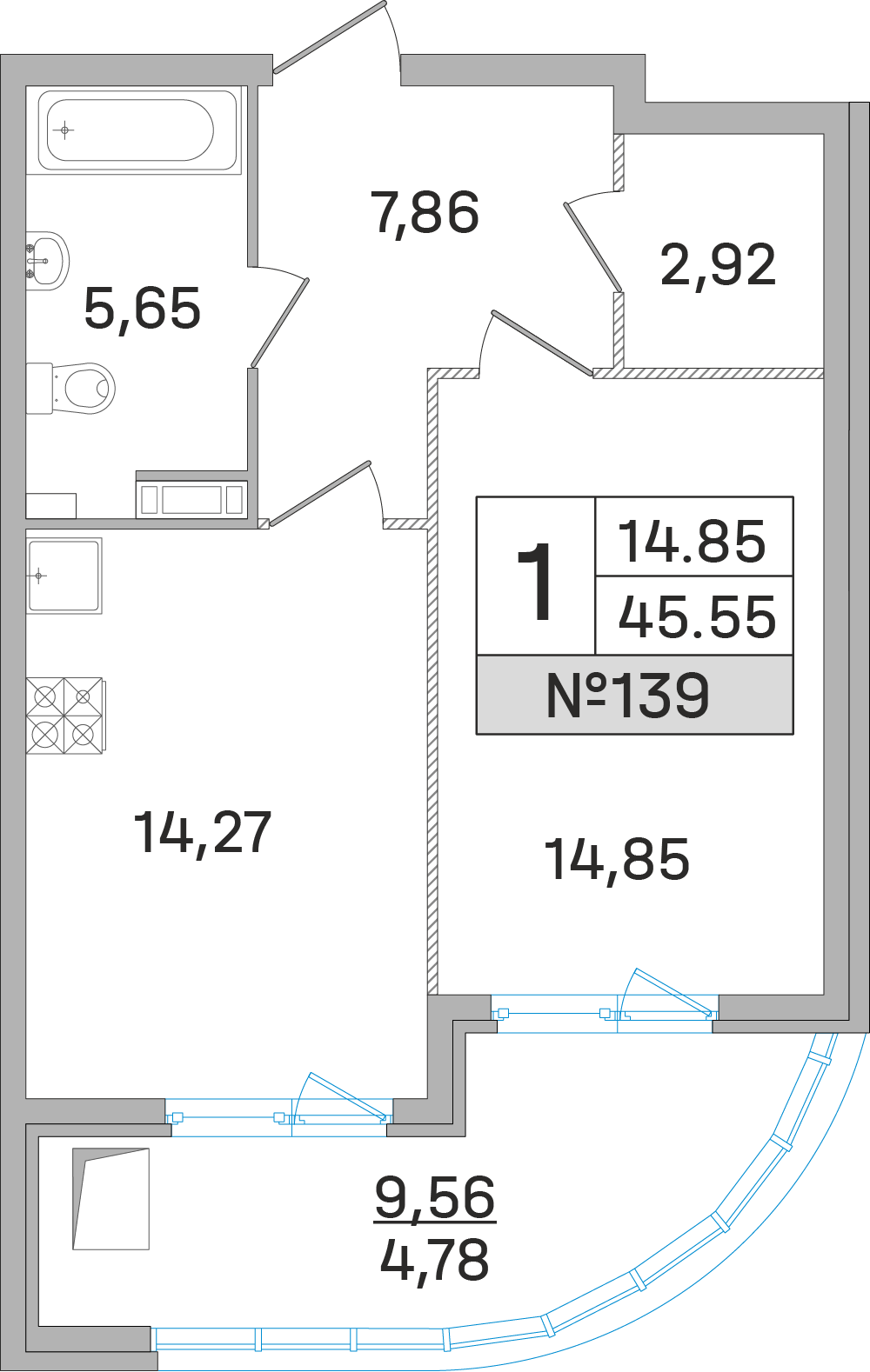 1-комн · 43 м² · 14 эт.
