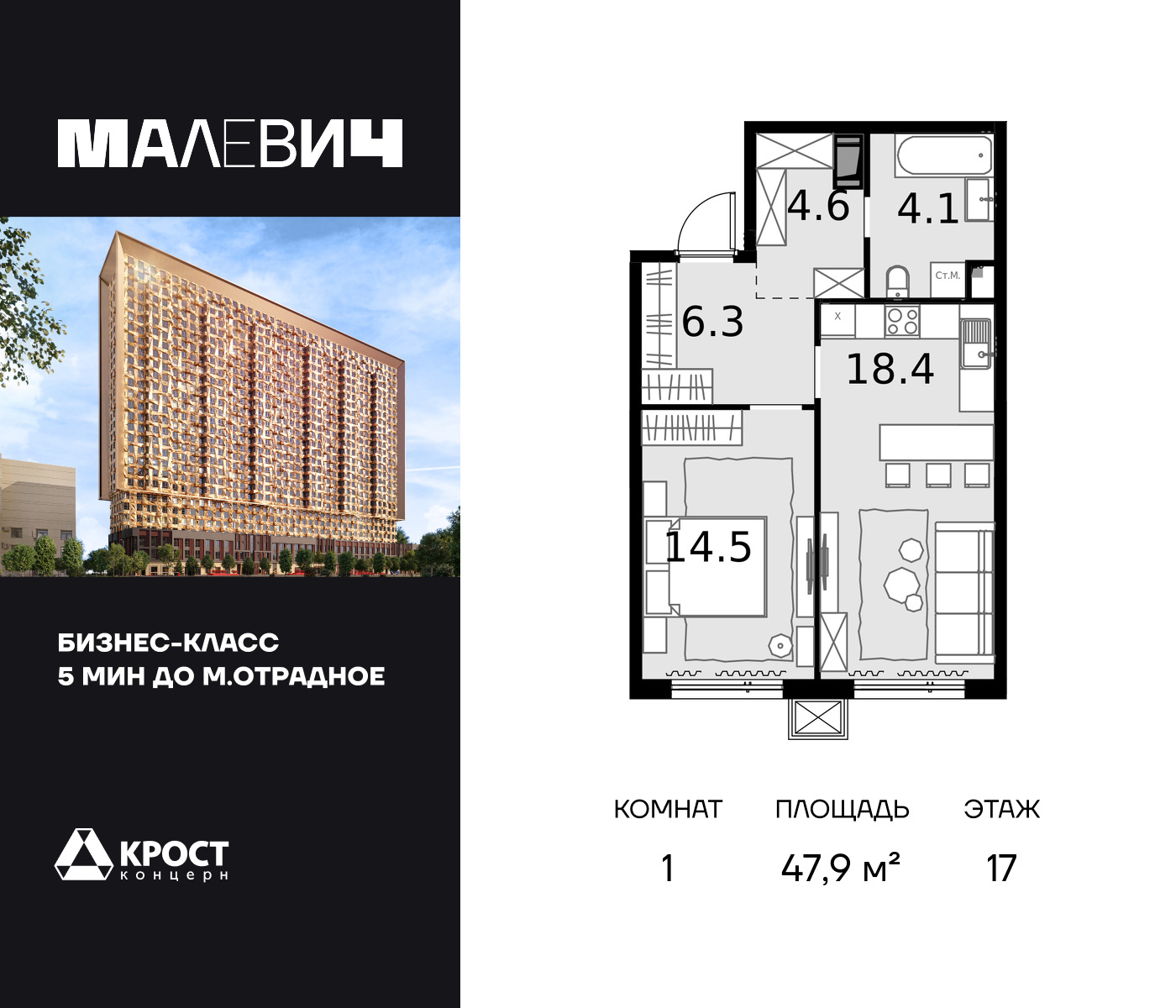 Дом MALEVICH — проект компании "Крост". Строительство будет вестись на Отрадной улице в Северо-Восточном округе Москвы. Под застройку отведен участок земли площадью более 1 га. В процессе строительства будет происходить реконструкция здания бывшего "Спортивно-оздоровительного центра с аквазоной "Отрадное" и надстройка жилого дома.