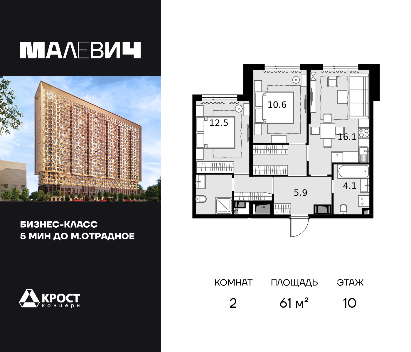 2-комн · 61 м² · 10 эт.