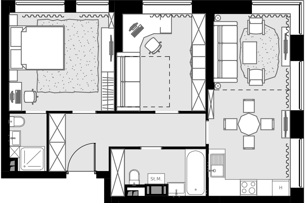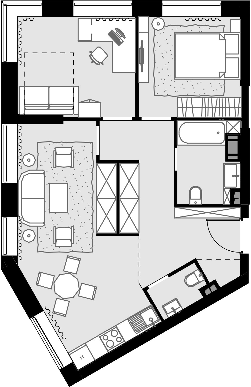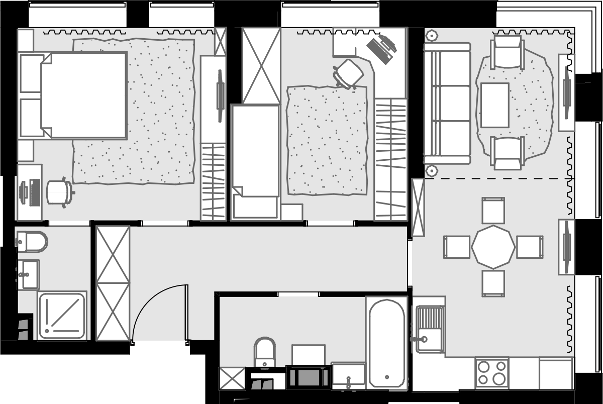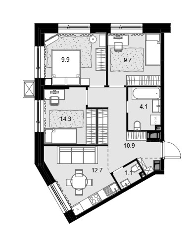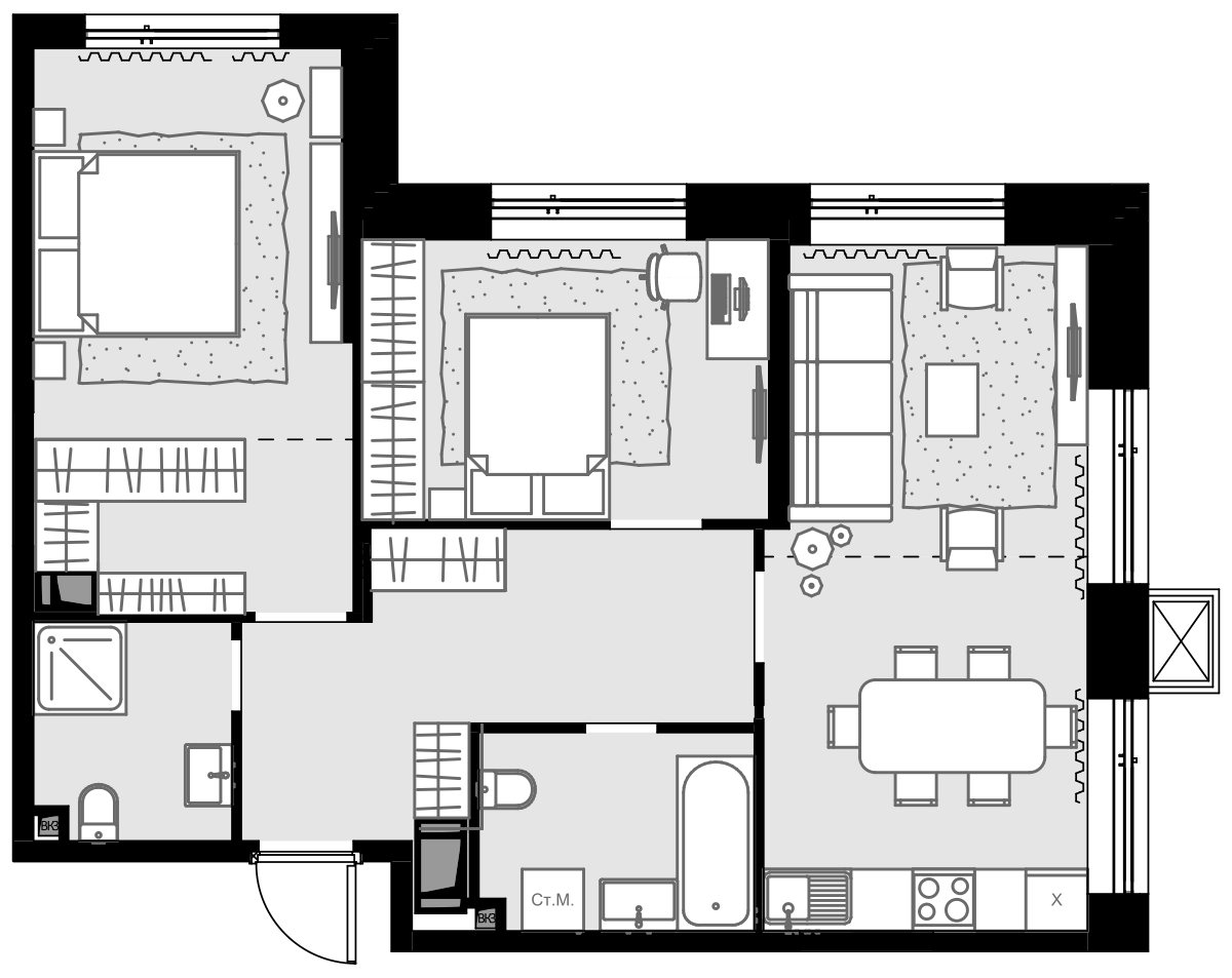 Минимальная площадь: 61,1 м² Максимальная площадь: 67,2 м²
