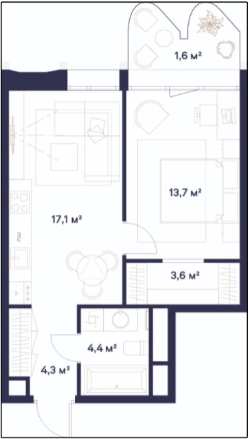 1-комн · 43 м² · 4 эт.