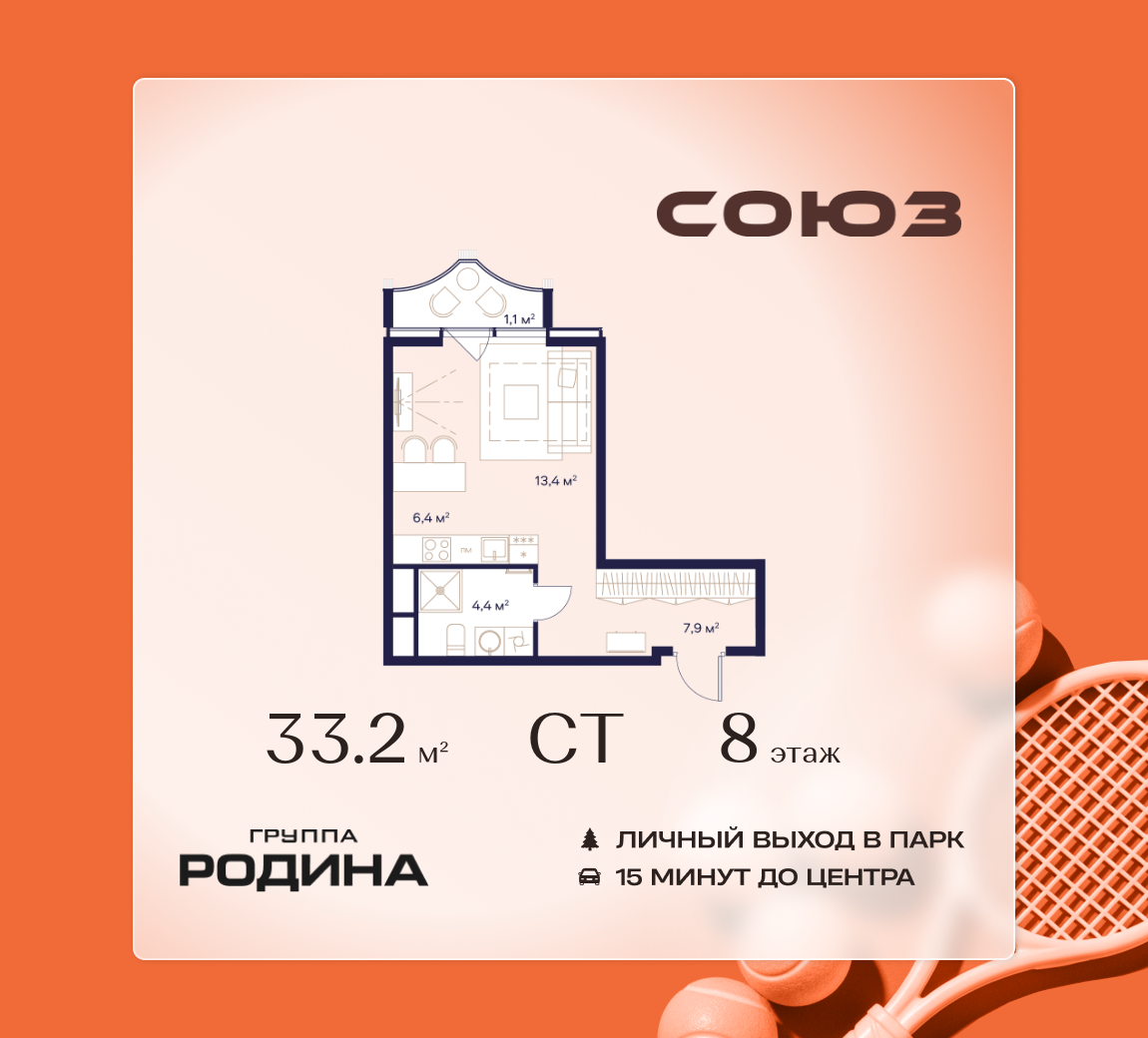 Студия · 33 м² · 8 эт.