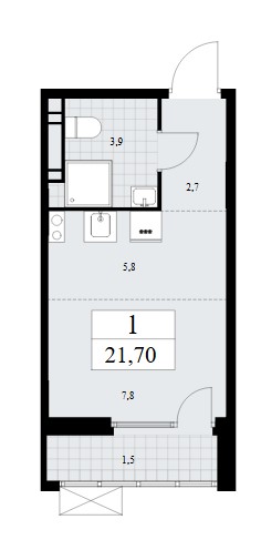 Студия · 21 м² · 14/19